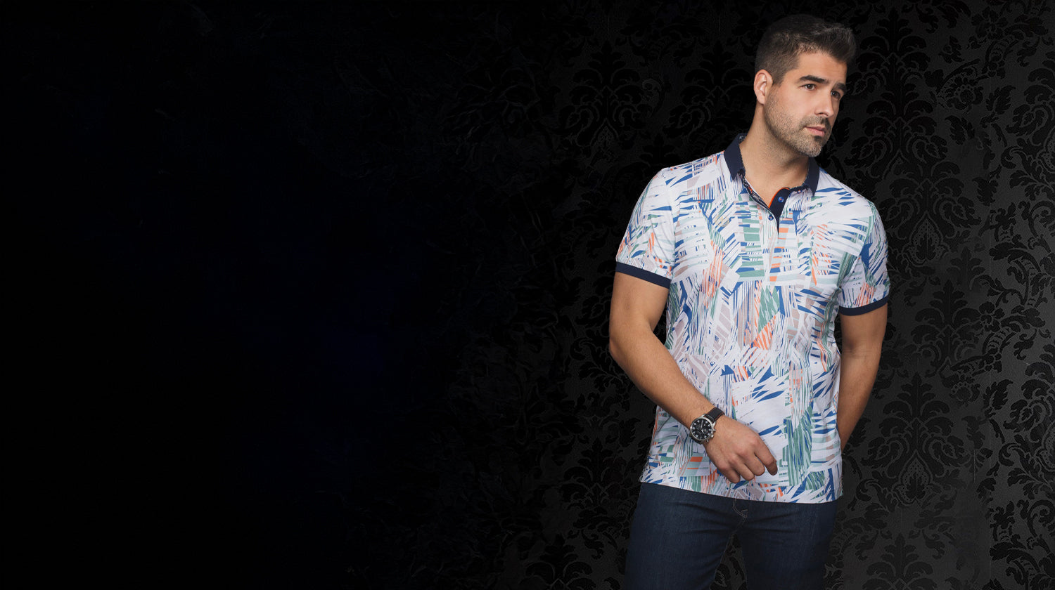 Polo pour homme par Au Noir | RAINBLOOM Bleu Or | Machemise.ca, inventaire complet de la marque Au NoirPolo pour homme par Au Noir | RAINBLOOM Bleu Or | Machemise.ca, inventaire complet de la marque Au Noir